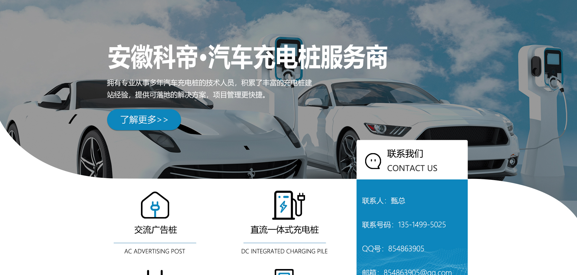 安徽科帝新能源科技有限公司坐落于安徽省會-合肥,是一家研發(fā)、生產(chǎn)智能充電樁設(shè)備,汽車充電站后臺監(jiān)控管理系統(tǒng)和生產(chǎn)高壓開關(guān)設(shè)備的企業(yè).由專門的研發(fā)團(tuán)隊、管理團(tuán)隊按照現(xiàn)代化企業(yè)制度規(guī)范設(shè)立的有限責(zé)任公司。致力于為能源智能、安全的應(yīng)用和節(jié)能減排提供整體的技術(shù)與產(chǎn)品解決方案。科帝集研發(fā)、設(shè)計、生產(chǎn)、銷售以及服務(wù)于一體,在電動汽車充電方案,充電設(shè)施建設(shè)和城市配電方面擁有廣泛的技術(shù)研究及經(jīng)驗積累,為客戶提供安全、智能的充電設(shè)備及充電運(yùn)營站建設(shè)一體化解決方案。并堅持以人為本、質(zhì)量為先、顧客至上、不斷創(chuàng)新”的企業(yè)理念,為能源行業(yè)的發(fā)展、節(jié)能減排做出重大的貢獻(xiàn)。公司擁有豐富的產(chǎn)品種類,目前科帝已研發(fā)生產(chǎn)了三十多種產(chǎn)品,充電設(shè)備有直流一體式充電樁、直流分體式充電樁、直流廣告樁、交流廣告樁、廣告一體樁、壁掛交直流樁;等多種充電設(shè)備;每一款產(chǎn)品都是精心打造,力求為客戶提供優(yōu)越的用戶體驗。展望未來科帝將通過持續(xù)的自...